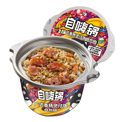 自嗨锅广式香肠自热煲仔饭,冬季“宅”家就能享受的美味!一杯冷水即可煮,360循环加热,15分钟后热腾腾的煲仔饭就完成了。