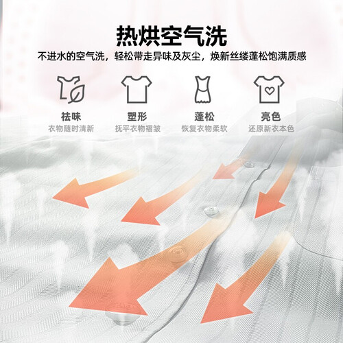 设有蒸汽除菌程序,能有效去除衣物细菌,家人穿衣更放心。搭配烘干功能,可以快速干燥衣物,即洗即穿。