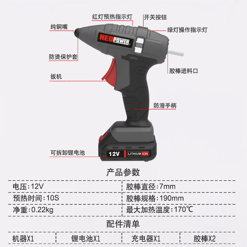 尼奥动力 锂电池热熔胶枪