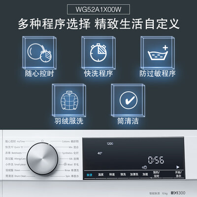 10KG大容量设计,满足一家人洗衣需求的同时,也能轻松搞定大件衣物洗涤。内置智能传感器模块,自动调整转速,洗衣更干净。