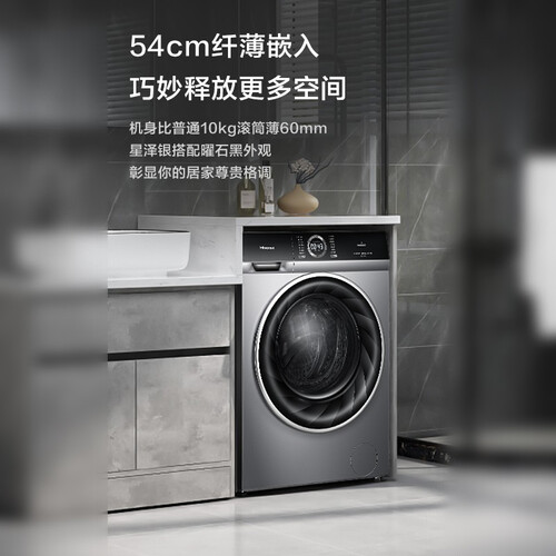 纤薄的机身,轻松嵌入多种环境摆放,采用永磁直驱变频电机,运行稳定,并且能降低洗涤时的噪音,营造安静的洗涤环境。