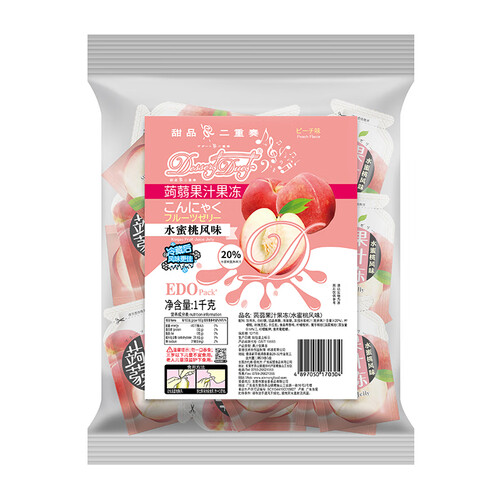 水蜜桃口味果冻,打开有蜜桃香气,特别甘甜。独立小包装干净卫生,分量很足,和同事好友家人一起享受美味吧。