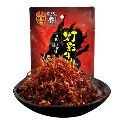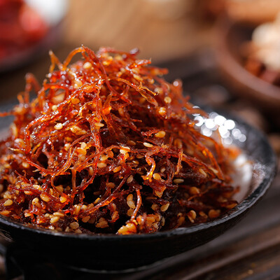 选取牛后腿腱子肉切片后,经过腌制、风干烘烤等工艺制作而成,牛肉丝色泽红亮,麻辣鲜香,醇正地道的四川风味。