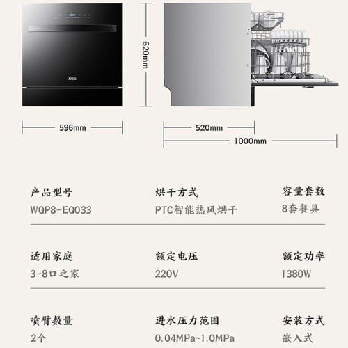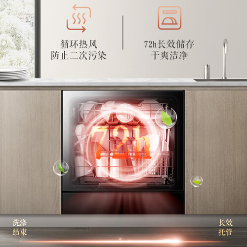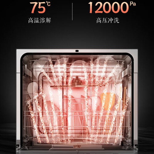 采用高温高压洗功能,能够非常快速的清楚顽固油腻,不担心烹饪后的重油污。使用360°的双喷臂,能够无死角的清洗餐具。