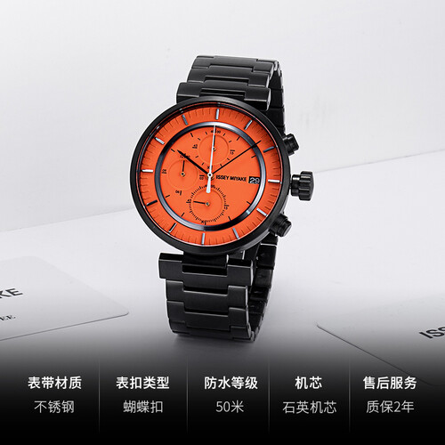 三眼大表盘,源自于跑车仪表盘设计,强调基本计时功能,读时更便利。充满力量的金属表壳,简约而又强劲的切割面,提升了时尚感。