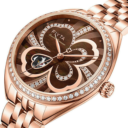 创意的四叶草造型,摇曳迷人身姿,具有美好的寓意,佩戴腕间幸运常在。咖色盘面搭配玫瑰金表带,低调中显奢华。