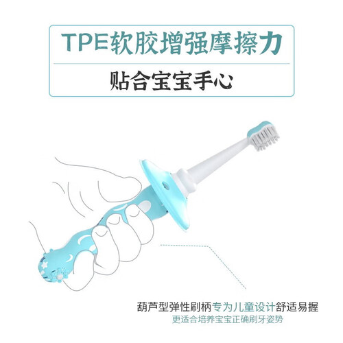 细软刷毛以及食品级软胶包裹背面,温和清洁、呵护口腔兼顾,葫芦形弹力刷柄,易用又安全,计时沙漏帮助掌握刷牙时间与增添乐趣。
