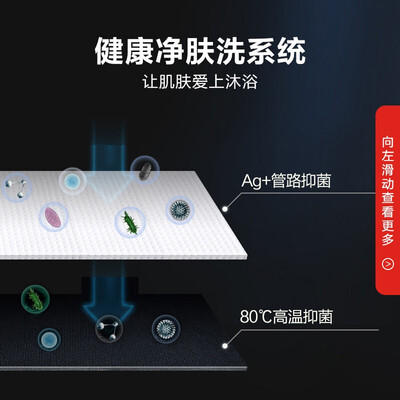 七倍增容轻松接力洗,再也无需苦苦等待热水升温。健康净肤洗系统,拥有出色的抑菌效果,保障管道持久洁净。