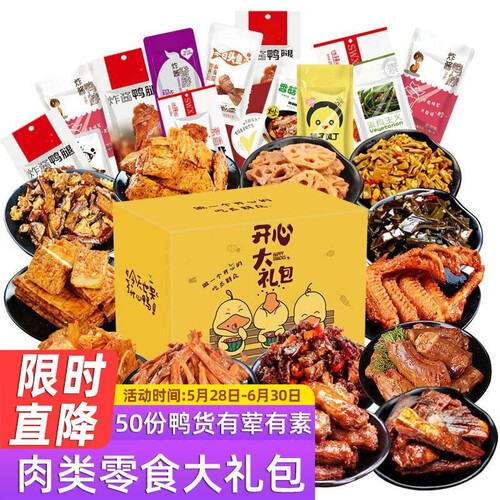 肉类零食礼包,精选高品质鲜肉,肉质紧实高营养,可直接食用,也可佐餐拌饭。麻辣味炸酱鸭腿,爽辣好吃不塞牙。