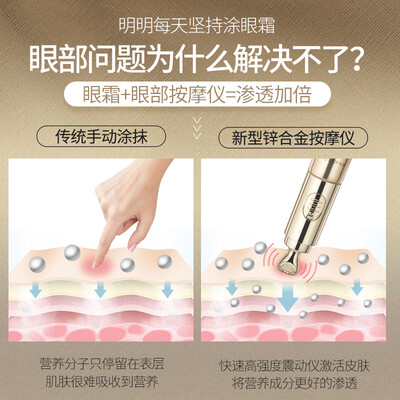 汗堕胎精华成分,结合高频微震按摩头,能快速唤醒肌肤,迅速渗入肌底,有效淡化细纹,打造立体的眼部轮廓。