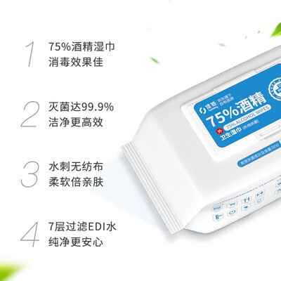 抽纸设计的50片含量酒精湿巾,采用植物配方无纺布为核心材质,辅以7层EDI纯水强力清洁除菌同时,多次擦拭也不会出现掉絮。