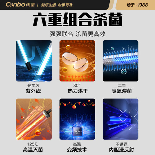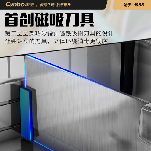 不锈钢内胆,能够更好地反射紫外线,提升消毒能力,且易于日常擦洗;分格消毒设计,各式餐具拥有专属的存放空间,消毒更安心。