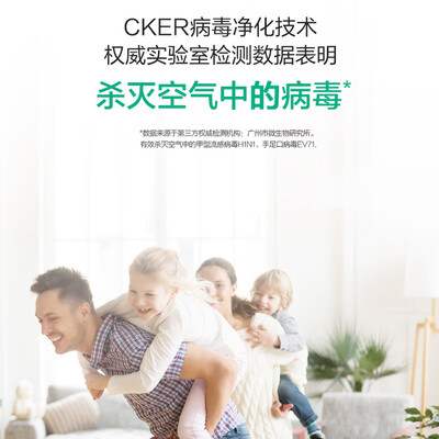 具有三色灯来显示空气质量,可以及时监测到空气质量状况。采用CKER病毒净化技术,减少空气中病毒数量,适用范围广。