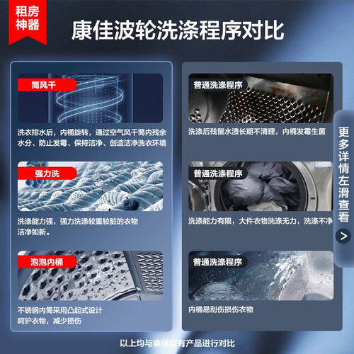 采用小巧机身设计,居家不占地,有效节约空间。具有风干内筒的功能,洁净洗衣,环境更卫生。