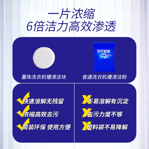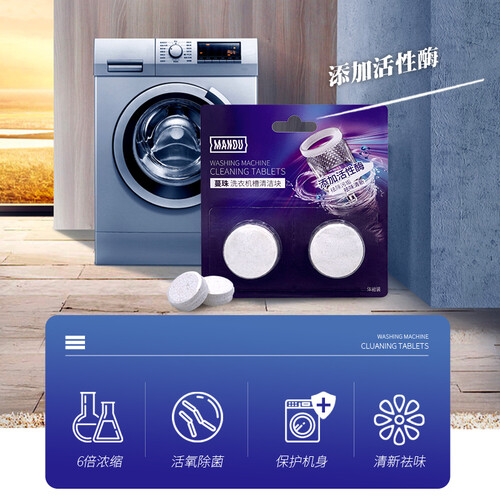 6倍浓缩型清洁剂,只需一片就能对洗衣机长积月累的污垢进行全方位清除,渗透力强,并能抑制细菌滋生,去除霉菌,保护家人健康。