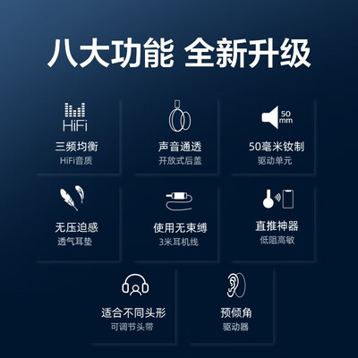 采用开放式后盖,展示更多音乐细节,声音通透。配备钢制数字化头带,调整佩戴姿势,坚固耐用。