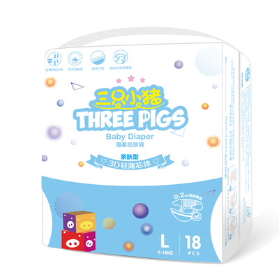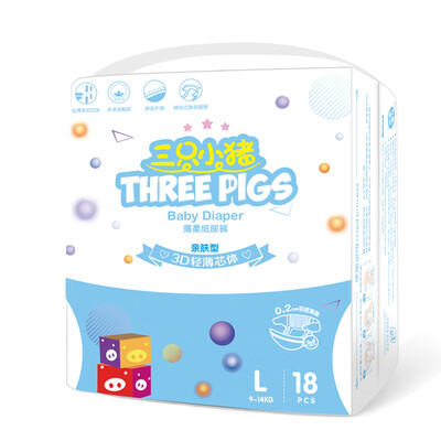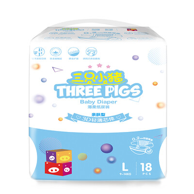 三只小猪婴儿纸尿裤,3D轻薄芯体,羽感轻柔,弹力腰围设计,贴合宝宝活动,多重立体防漏,4cm柔软隔边,挡住尿液迅速吸收。