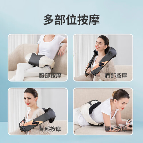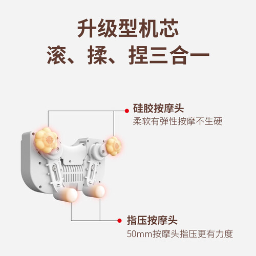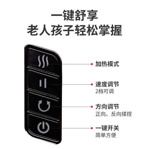 4个可滚动式独立按摩头,双向疏通,挤压按拉肌肉。逐级升温模式,温和热敷,缓解疲劳不适。一键启动,操作更简便。