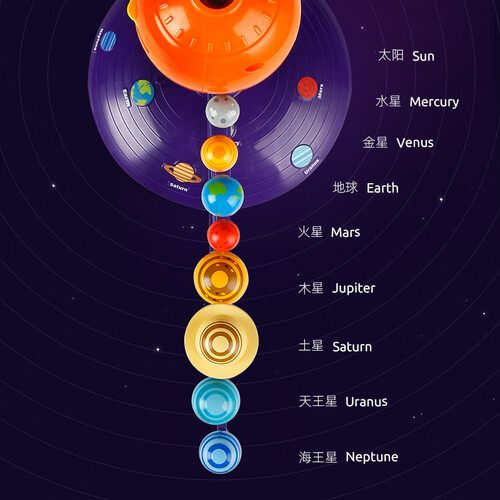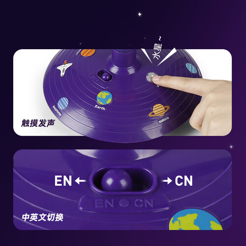 投射8大行星,营造梦幻科技感,吸引宝宝注意力。拥有24种宇宙图像,激发孩子对神秘太空的向往,并学到更多太空知识。
