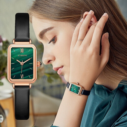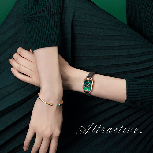 小方盘搭配翡翠绿色,复古感满满,轻松出街展现个性。指针与刻度清晰自然,不会有丝毫的小家子气,方便查看时间。