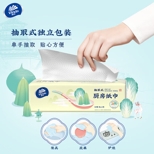 具有特色的外包装更显别致,水滴压纹提升吸水吸油能力,让厨房洁净更轻松;抽取式设计更加方便使用,防水防尘防油污。
