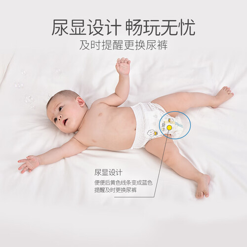 运用双核芯体,瞬吸锁尿,宝宝穿着干爽舒适。易撕拉开口设计,方便穿脱,新手妈妈也能轻松驾驭。
