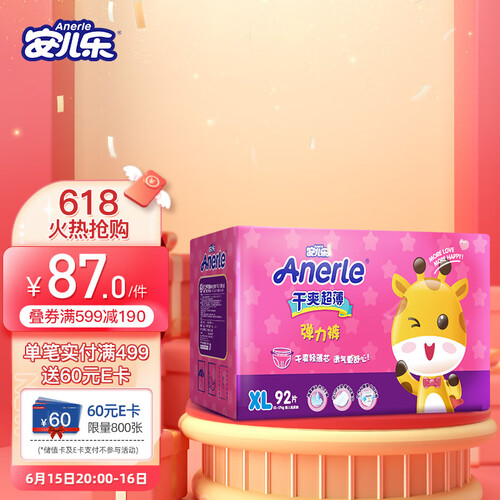 拥有魔力吸水因子,能够快速吸收尿液,避免外渗,让妈妈更加安心。选用进口IP木浆,触感柔软,穿戴舒适。