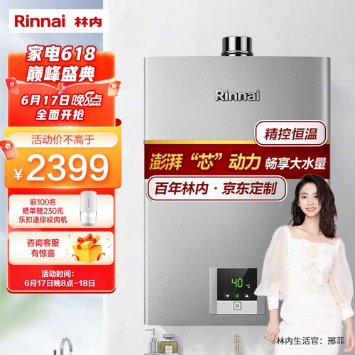 搭载升级CPU,搭配大通量水路,确保水量澎湃。拥有无极变速火排,让用水不再忽冷忽热,带来零波动的沐浴体验。