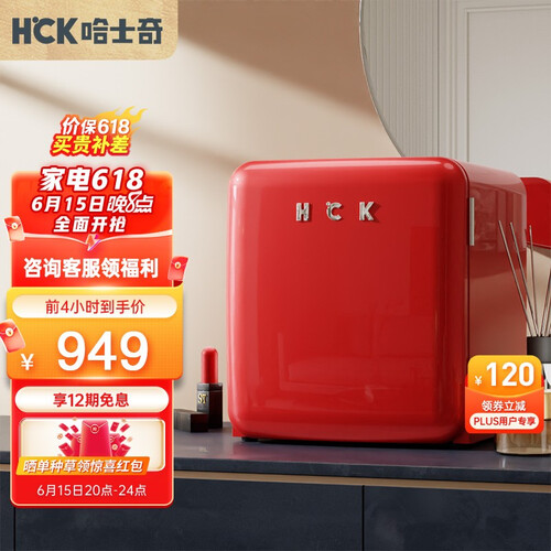 哈士奇 复古弧角小型冰箱