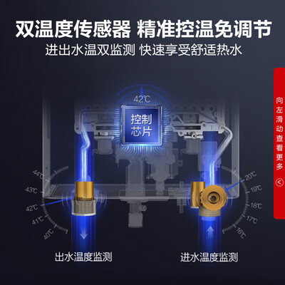 内置双温度传感器,精准调温,热水输出温度更精准,快速享受舒适热水。搭载分段燃烧系统,智能调控火力大小,多点用水恒温依旧。