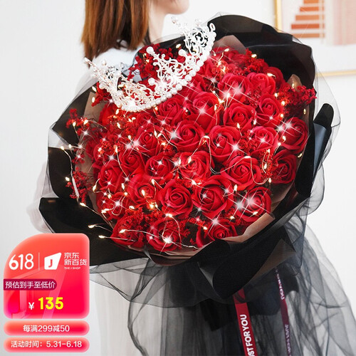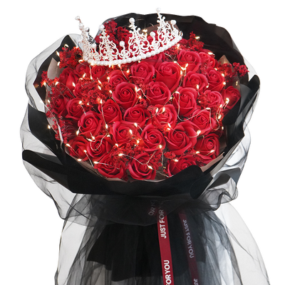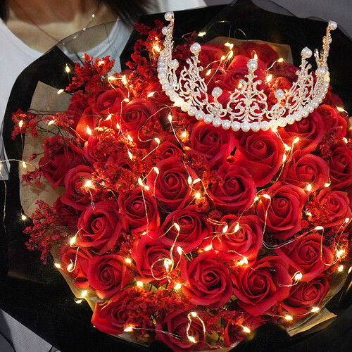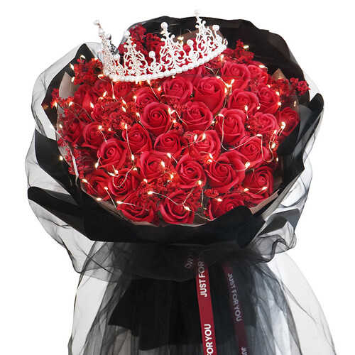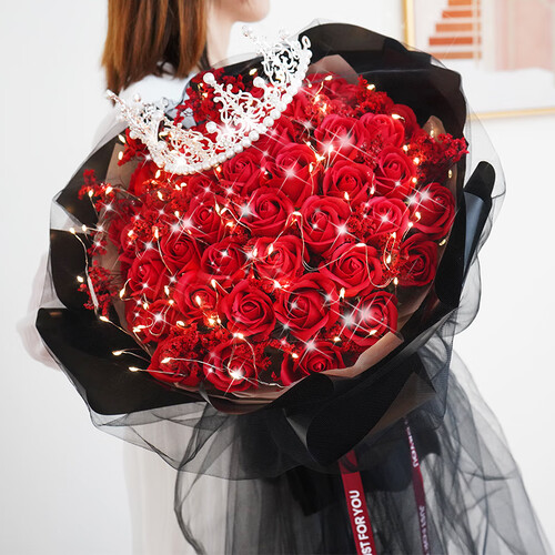 采用手工皂制成,花瓣形状逼真,并散发淡淡的玫瑰香味。浪漫的串灯结合皇冠设计,营造浪漫的氛围感,送给女生心意满满。
