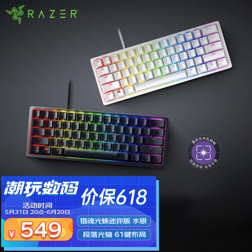 采用紧凑型61键布局,为鼠标移动留出更多空间,外出携带更为方便。搭配可插Type-C编织线缆,即插即用,拆卸方便。