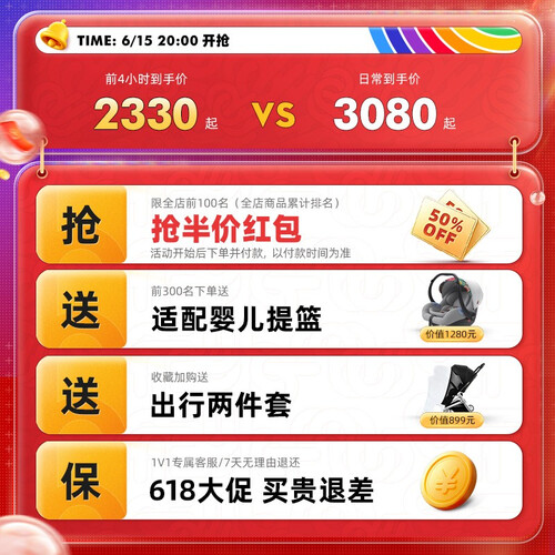 婴儿车设计了蛋壳全包裹靠背,专利级设计更具新颖,能有效保护婴儿脊椎。靠背角度可调节,科学辅助宝妈照顾婴儿。