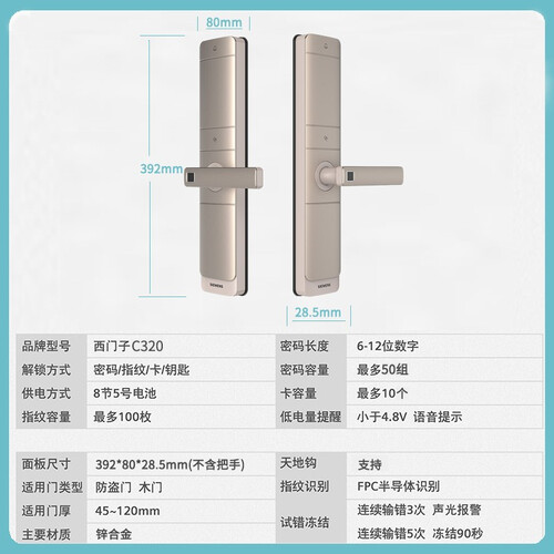 内外四轴承把手顺滑手感,C级锁芯智能真插芯,延时报警防技术开启,猫眼防盗防止通过猫眼恶性开启,避免随意操作。