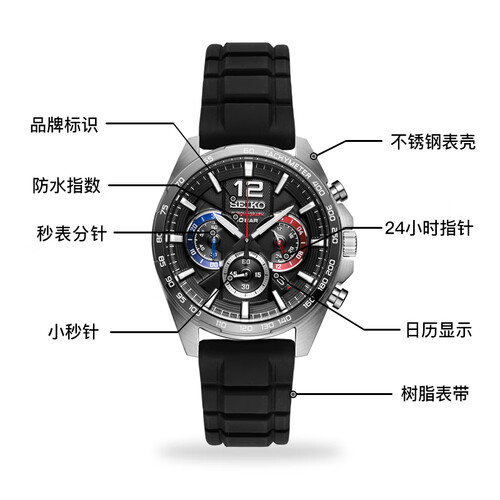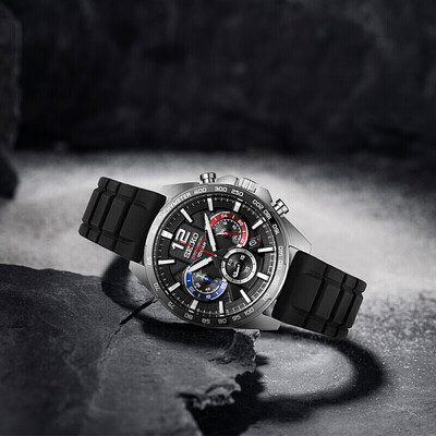 多功能三眼表盘时尚大气,轻松搭配不同场合使用。树脂表带防潮防汗,提升佩戴舒适度。