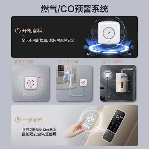 内含co防泄漏预警系统,能够24小时全天候的监测室内的一氧化碳浓度,一旦浓度超标就会马上发出警报。