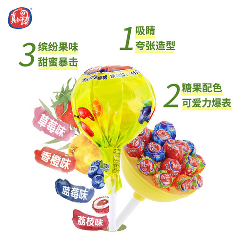 不一样的超大棒棒糖,一手不可掌握,非常吸睛。什锦水果味,口味繁多,香甜的滋味让人垂涎欲滴。