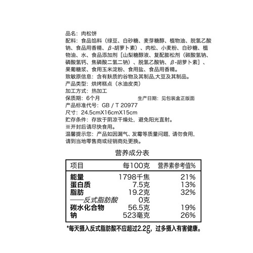 食材经过均衡配比,精心烘焙之后,做出的肉松饼甜咸适中,酥软鲜香。酥松的外皮搭配饱满的肉松,让味蕾得到满足。