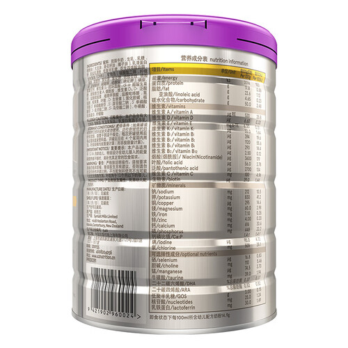 源自新西兰专属牧场,经过科学养殖,奶源更加科学营养。特别添加乳铁蛋白成分,12至36月龄宝宝的专属奶粉。