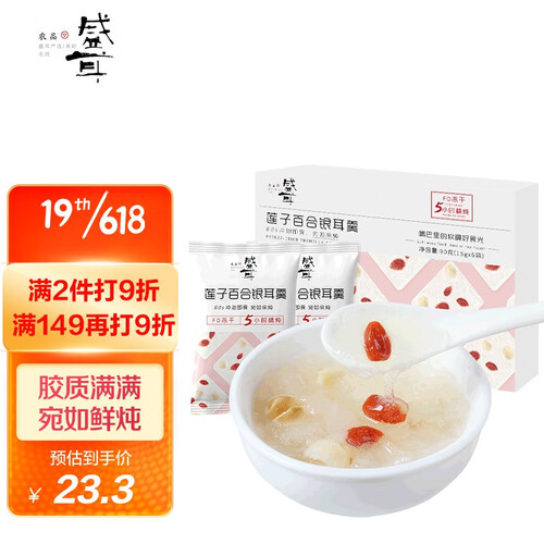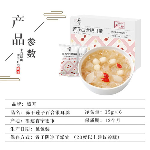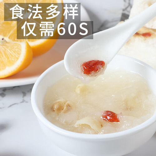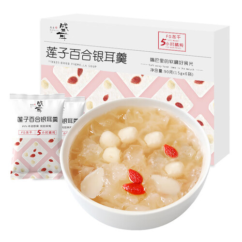 通过60秒的冲泡便能即食的银耳羹,里面添加有多种好料,如莲子和百合,可增加营养。它的质地比较浓郁,口感软糯,清甜不腻。