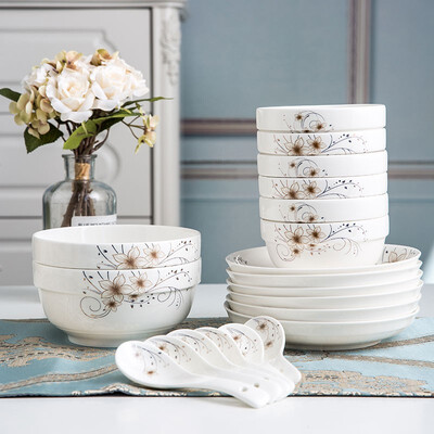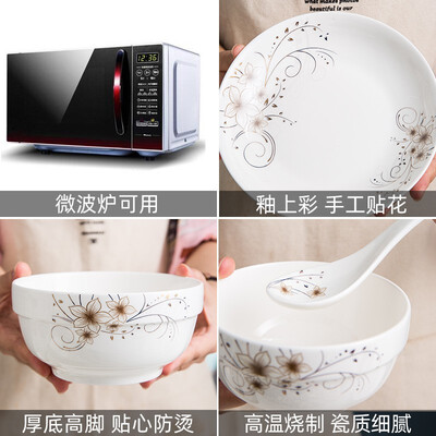 传统中式餐具,采用1230度高温烧制而成,釉上彩工艺安全健康;瓷质紧密餐具久用不易褪色,厚底高脚碗身呵护双手防烫易端握。