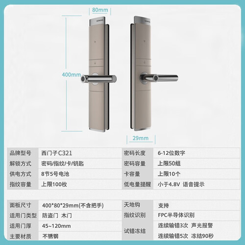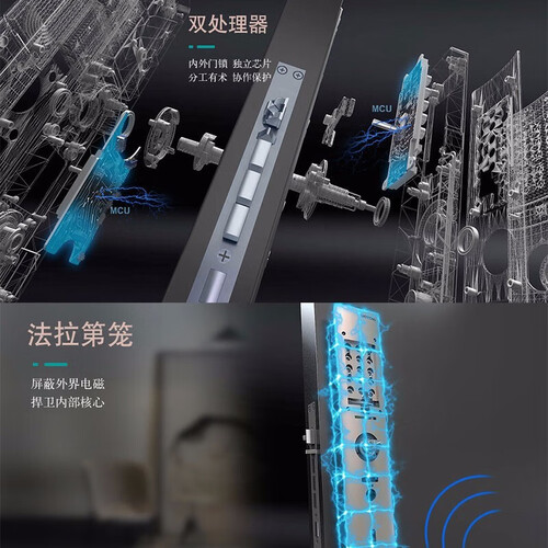 采用虚位密码,只要连续输入正确密码即可开锁,防止旁人偷窥记忆。防猫眼设计,把手锁定无法按压,小孩不易误开门。