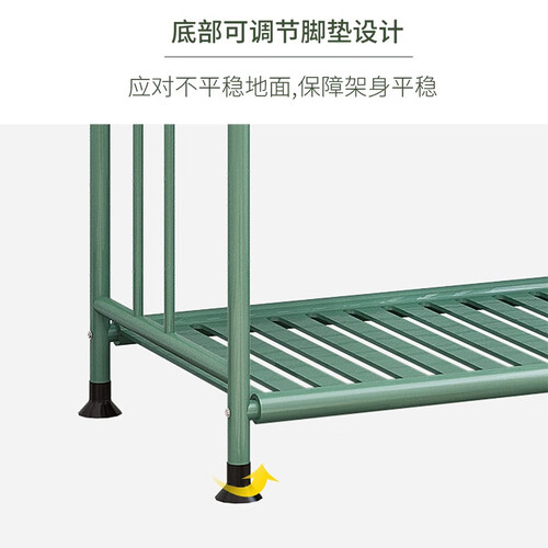喷涂加固圆管承重性强,坚固结实耐用耐磨。置物架底部可调节脚垫设计,轻松应对不平稳地面,保障架身平稳。