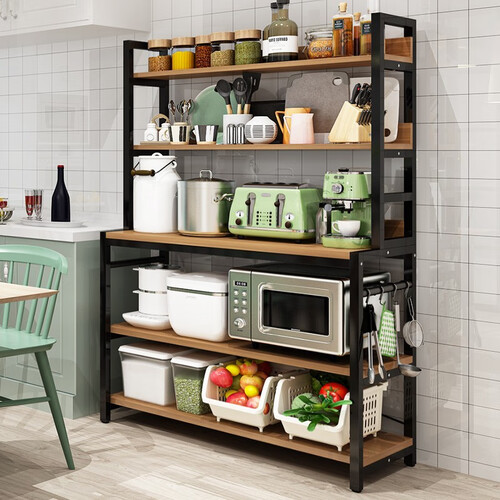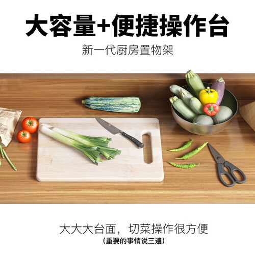 使用钢木结合的设计,坚硬结实,承托力更强。采用多元化空间设计,兼容不同物品的存放需求,餐具电器均能找到适合的空间。