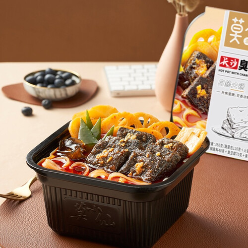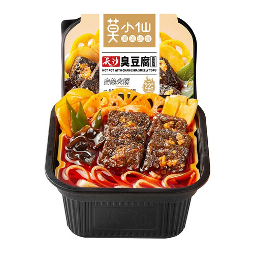 莫小仙自热火锅将长沙臭豆腐和重庆牛油底料搭配,香辣爽口,豆腐柔软多汁,一块豆腐,一口汤汁,让你吃到爽。