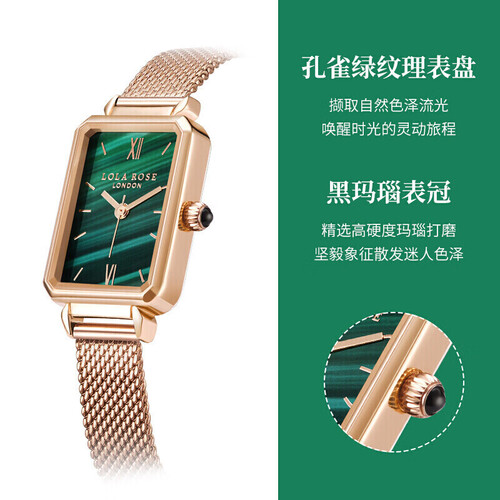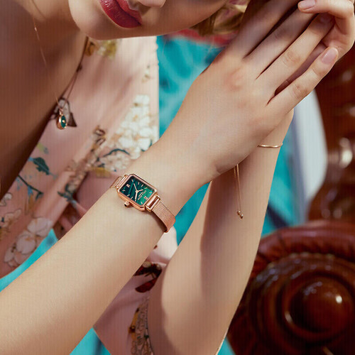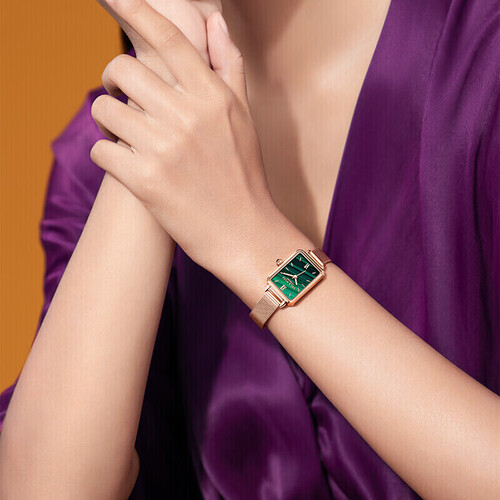 这款手表采用复古小方盘打造,款式简约大方,能够轻松搭配各种穿搭风格。复古孔雀绿配色,色泽浓郁饱满,彰显品质感。