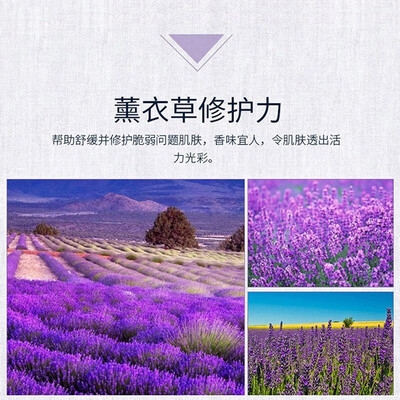 提取薰衣草精华,帮助肌肤修护受损屏障,打造强韧肌底。洋甘菊、栀子花等多重舒缓精粹,有效缓解肌肤干燥、脆弱,缺水等问题。