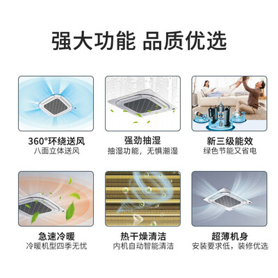 中央空调采用四面出风的设计,可以360度覆盖整体空间形成环绕制冷效果。搭载热干燥清洁功能,可以保持内机干燥。