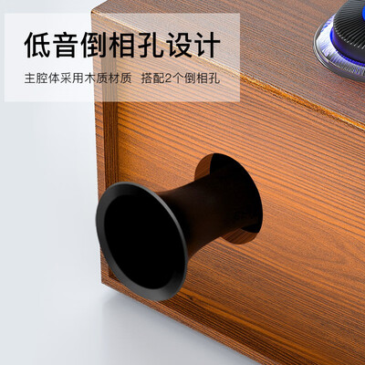 经典木质箱体结构,轻松融入不同风格的家居装修。双喇叭配合双导音孔,享受影院级音效。