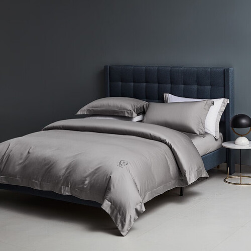 精选60支高支高密的长绒棉面料,触感丝滑柔润,纯灰色搭配精致刺绣,简约高雅。活性印染,不易掉色,固色度高。